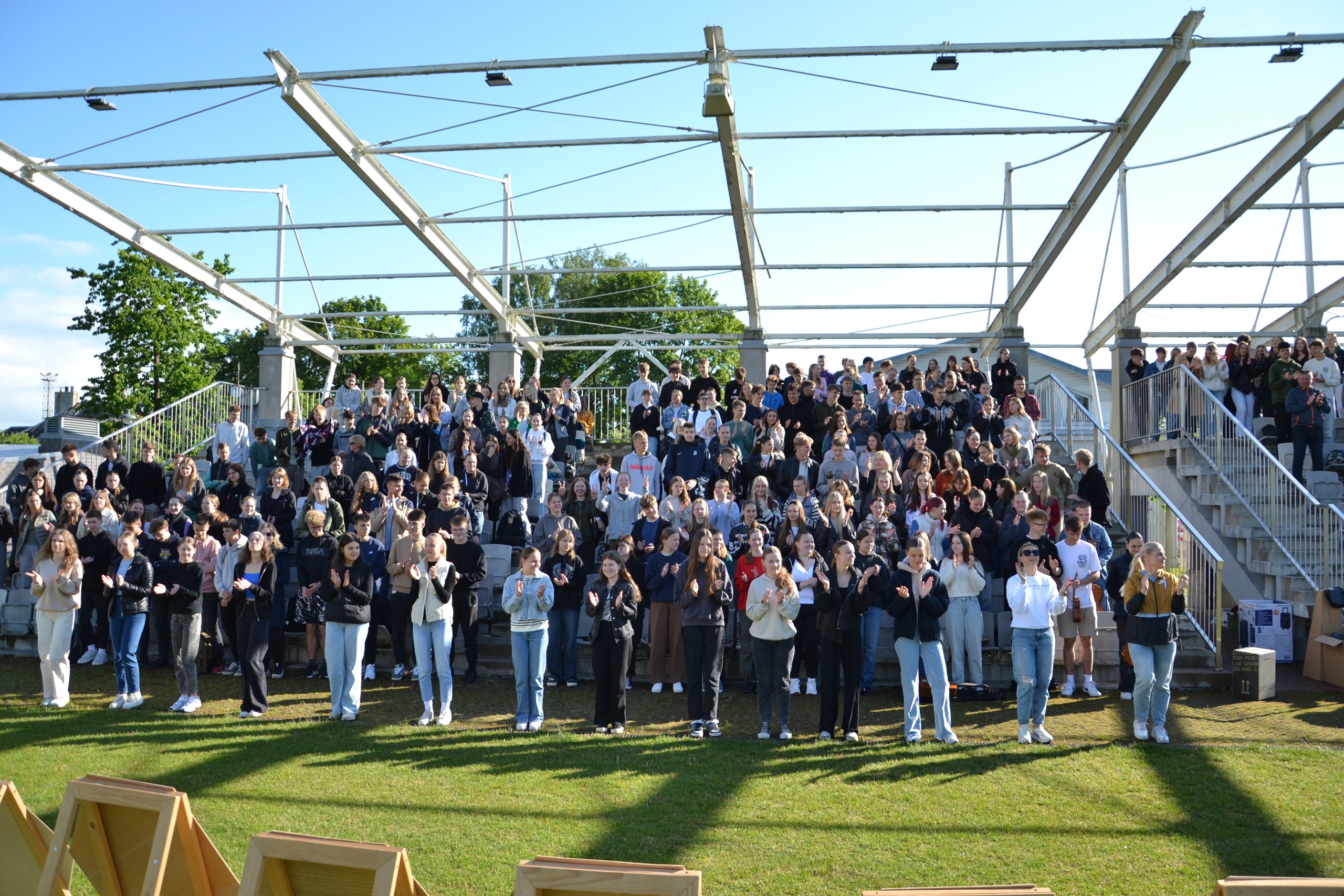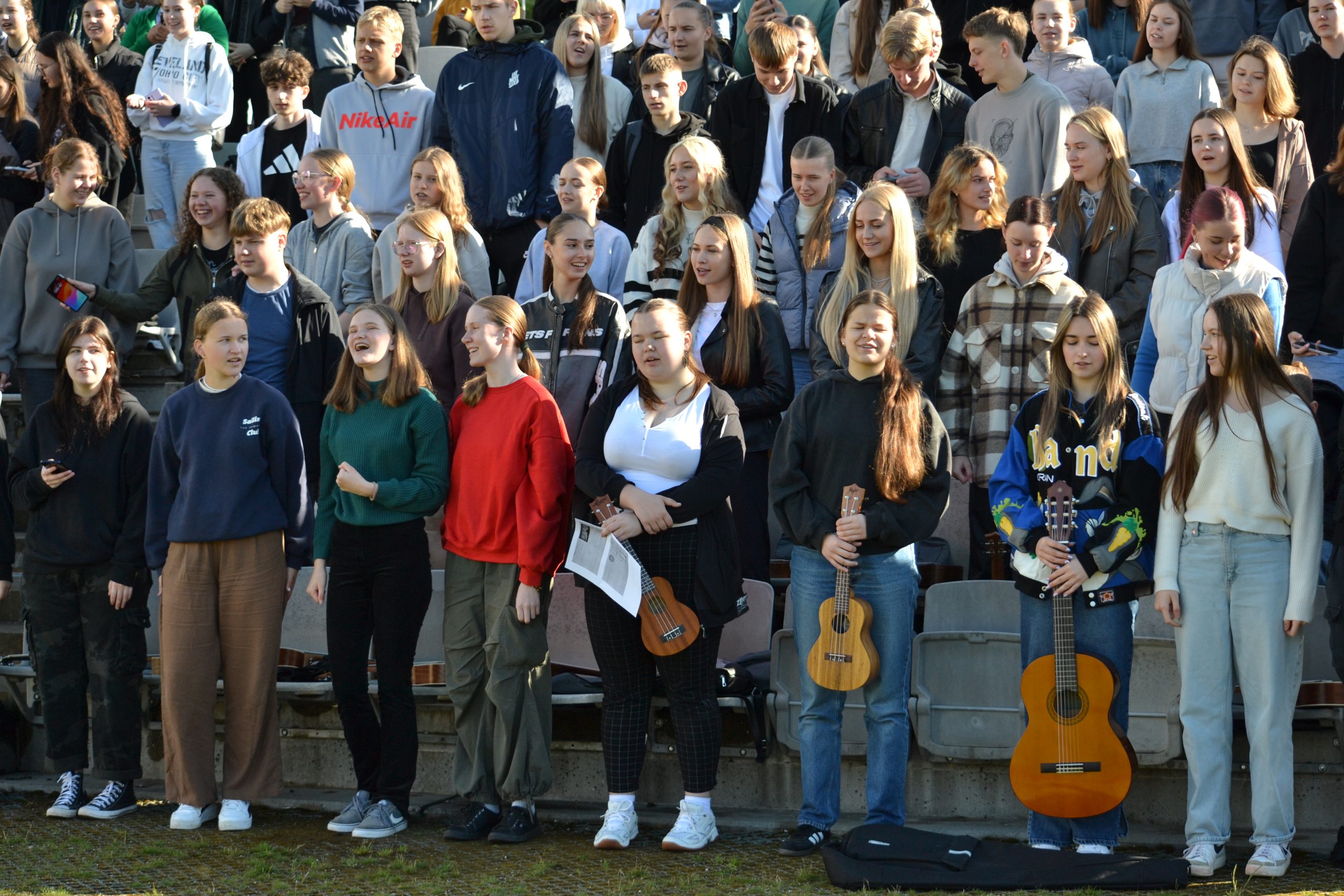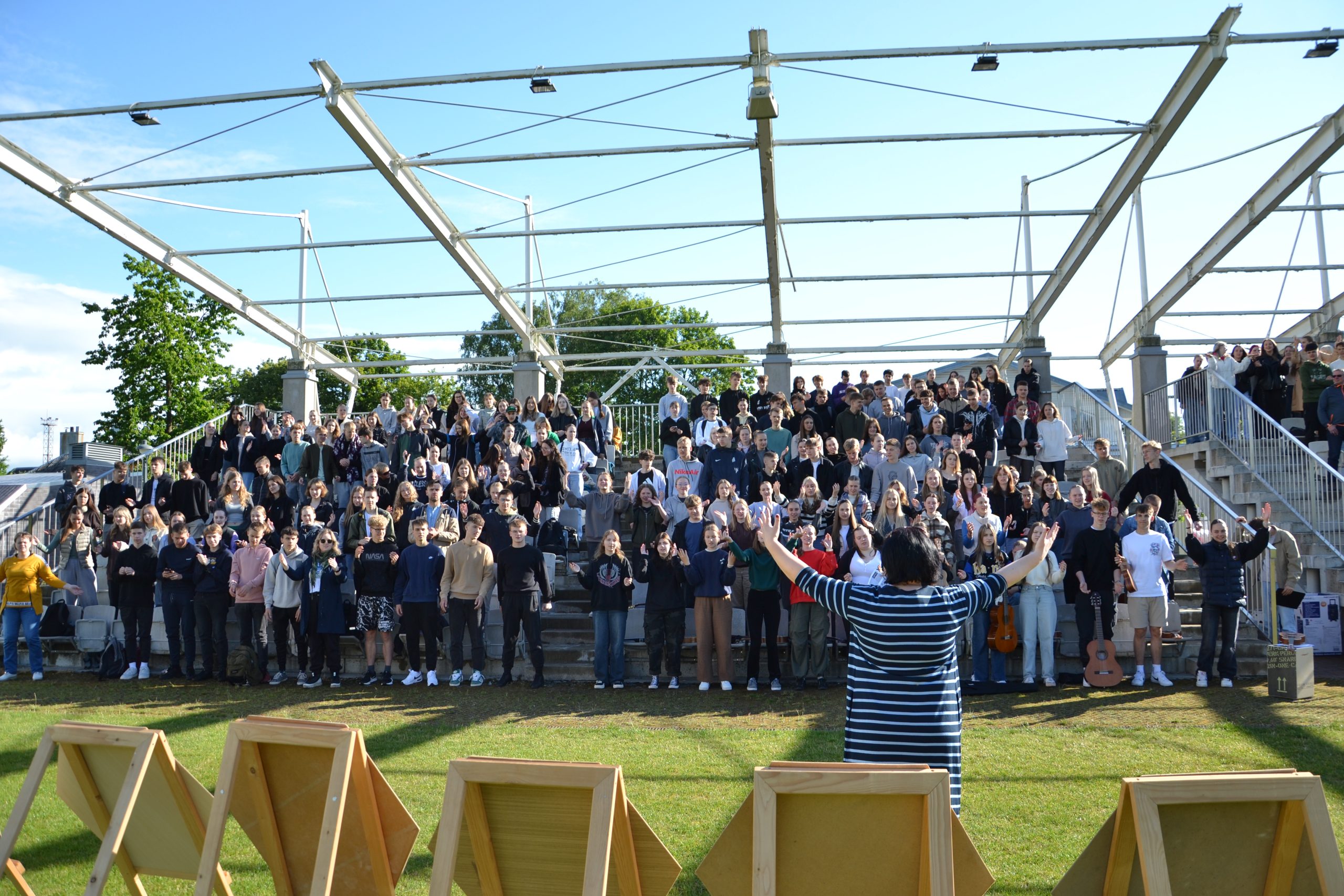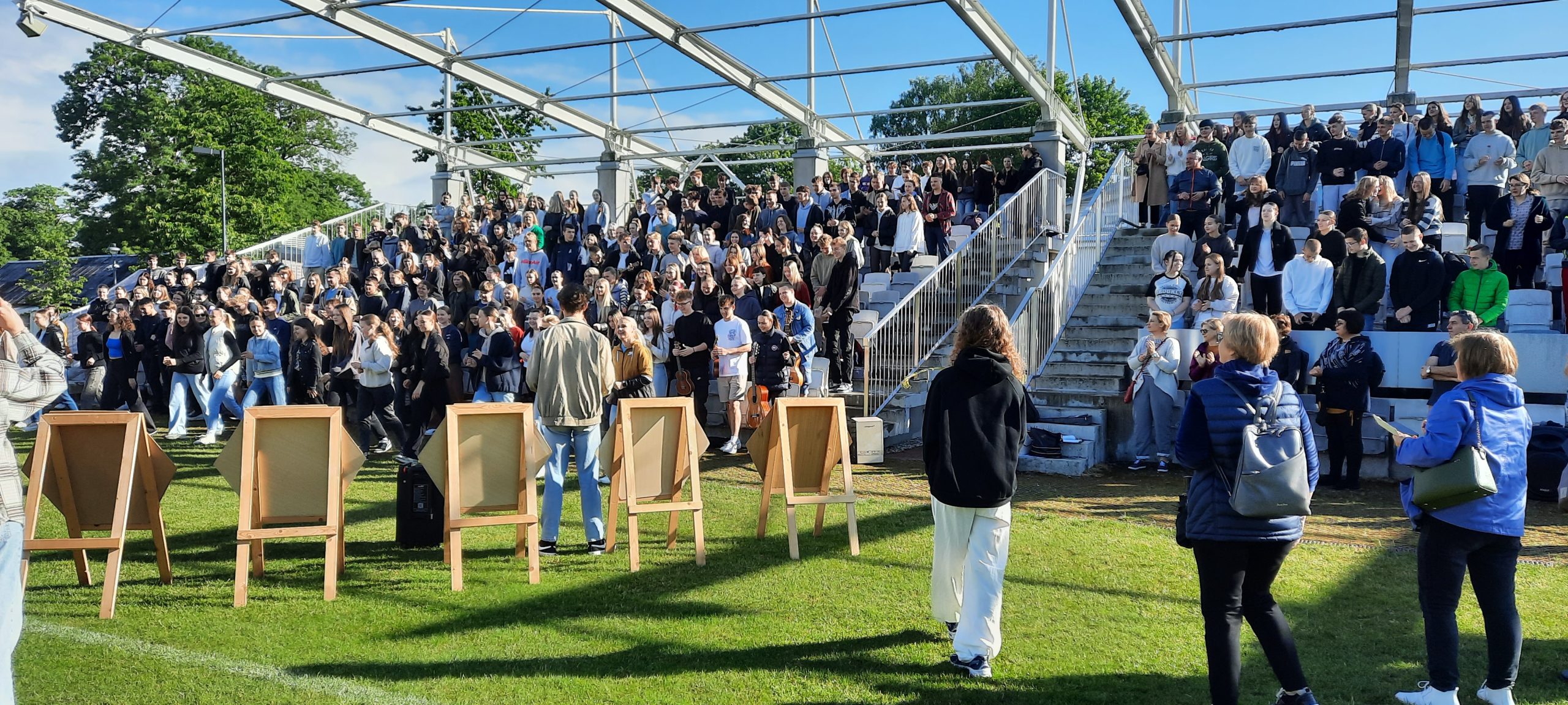 Ketvirtadienį Plungės ,,Saulės“ gimnazijos gimnazistai dalyvavo netradicinėse pamokose, kurios vyko miesto parke. Alternatyvaus meno diena ,,MENŲ INDUSTRIJA 2024“ subūrė I-II-III gimnazinių klasių mokinius, auklėtojus ir dalykų mokytojus. Tarytum ,,Dainų šventėje“ skambėjo dainos Lietuvai ir Plungei. Mokiniai ir mokytojai stebino savo kūrybiniais sumanymais ir sprendimais, kurdami dainas ir skanduotes, apipavidalindami ,,Korius“, ieškodami pačių originaliausių fotografinių sprendimų. O smagiu šokiu ,,Pasveikinkim vieni kitus“ gimnazistai apjungė visą bendruomenę taip, kad net lietus buvo nebebaisus. Juk svarbiausia – bendrystė, pabuvimas kartu, galimybė dar geriau vieniems kitus pažinti.