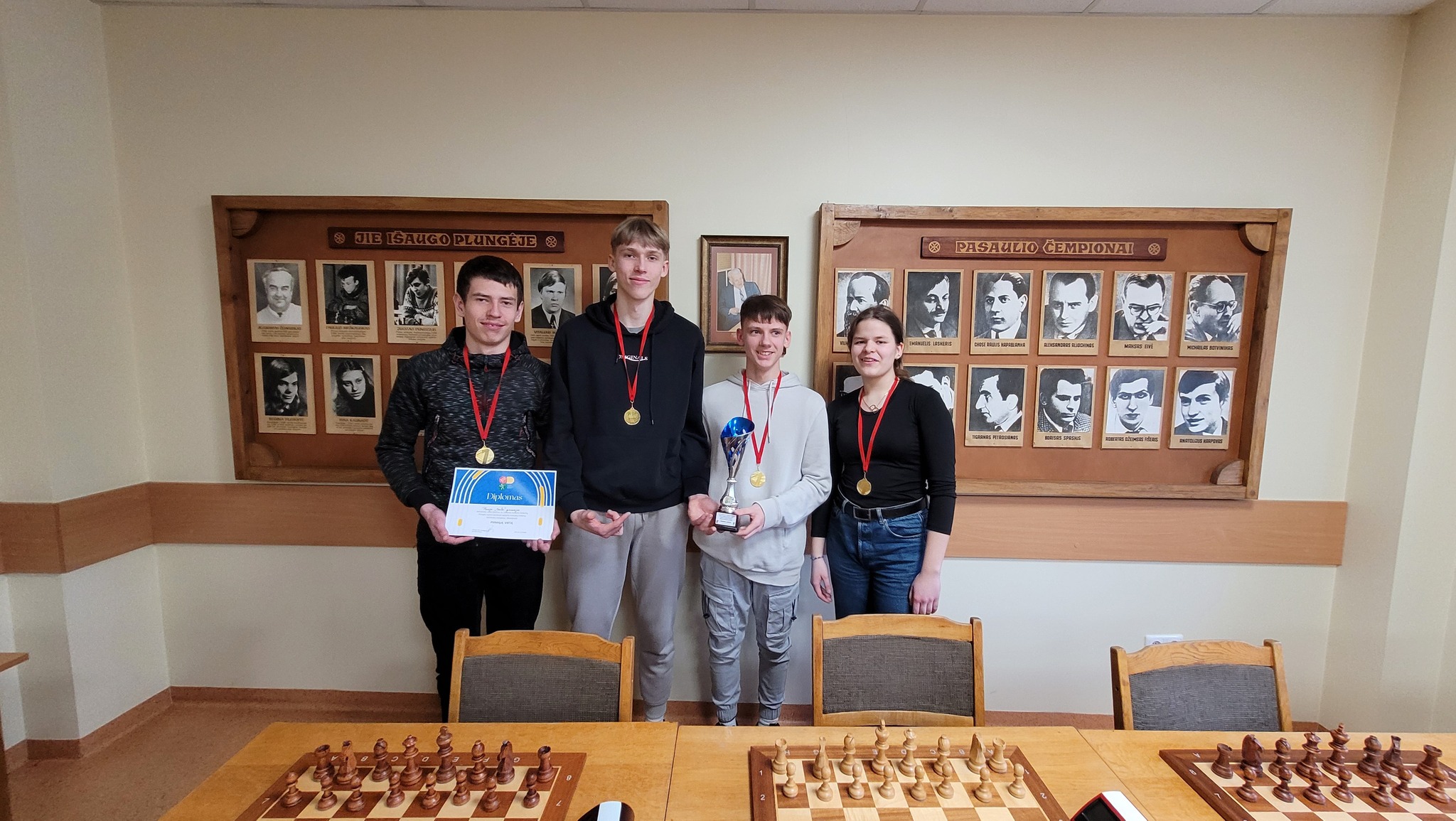 Plungės rajono bendrojo ugdymo mokyklų mokinių šachmatų varžybose jie iškovojo 1-ąją vietą.