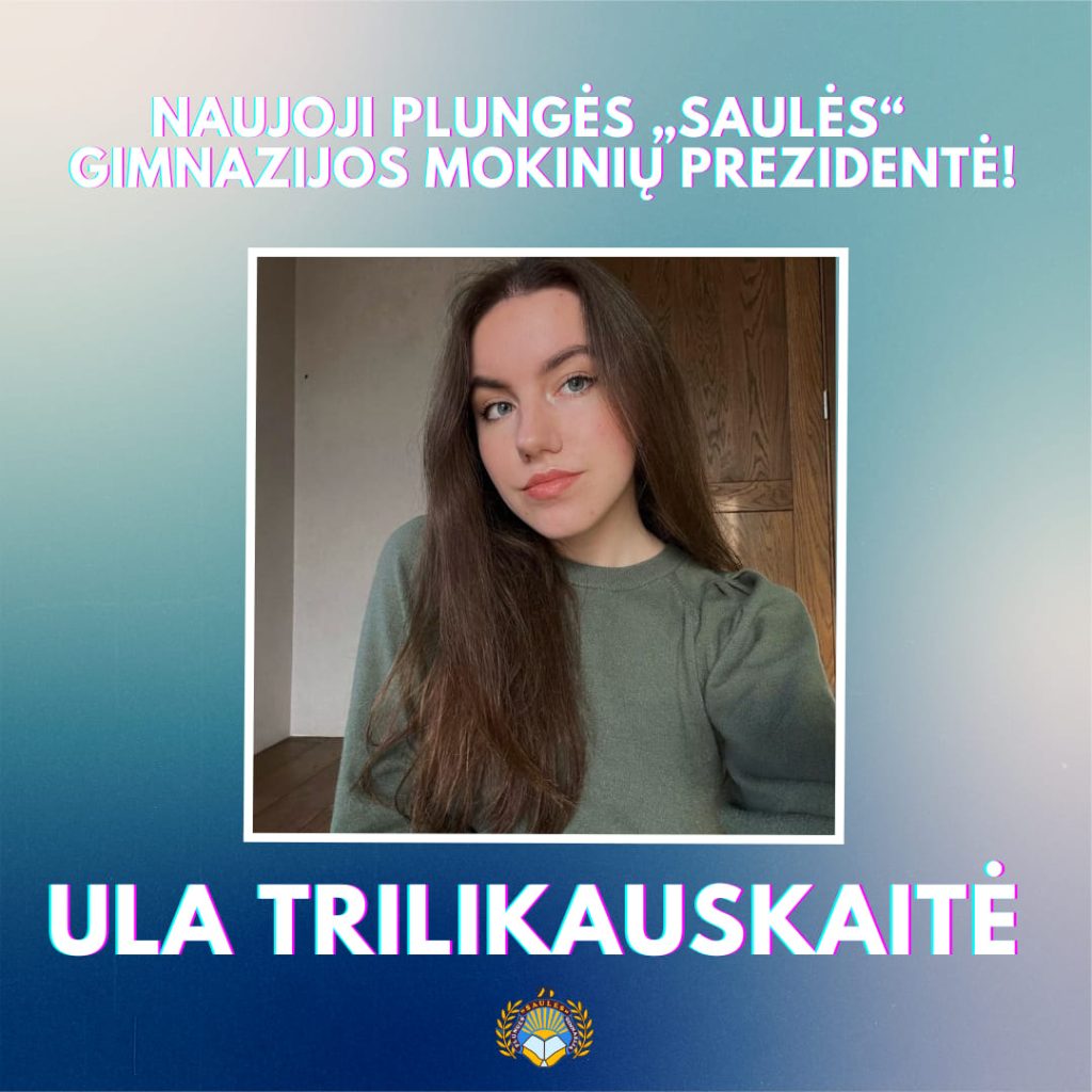 Kovo 16 d. balsavimas lėmė, kad „Saulės” gimnazijos mokinių prezidento rinkimus laimėjo Ula Trilikauskaitė! Sėkmės einant šias pareigas!